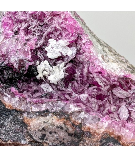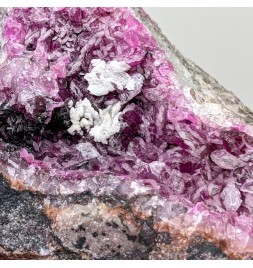 Piece presenting crystals of cobaltiferous dolomite of bright color contrasting with a gray gangue.
