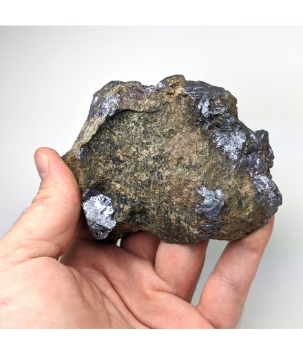 Specimen measuring 10.5 cm long by 8 cm wide and 3.4 cm at its thickest.