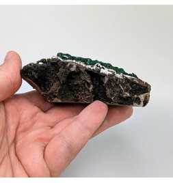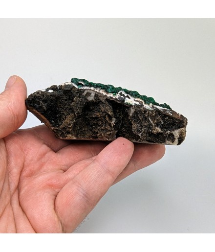 Contrasting and shiny piece presenting some malachite dark green on white quartz.