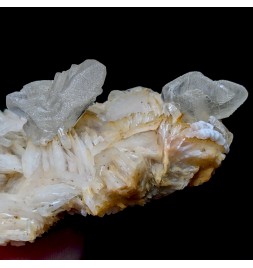 Piece bearing two cerusites twinned on a thin baryte dewy.