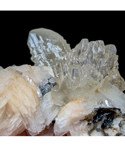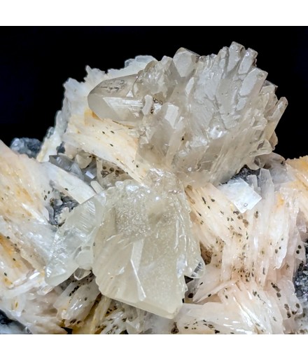 Aesthetic small piece associating cerussite, a fine crystallization of baryte and galena.