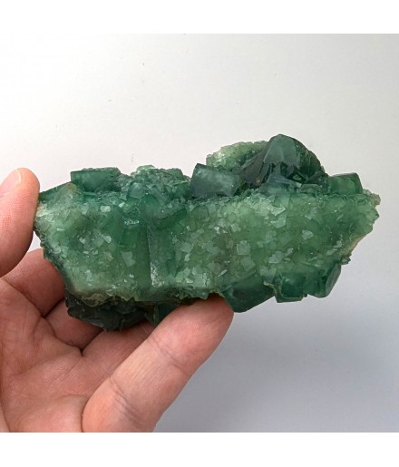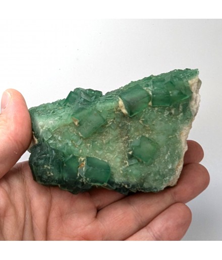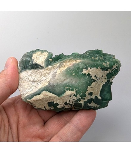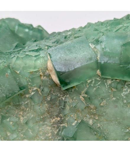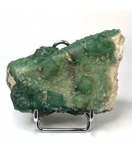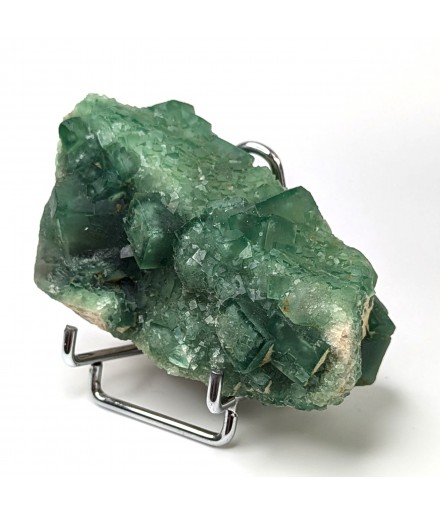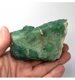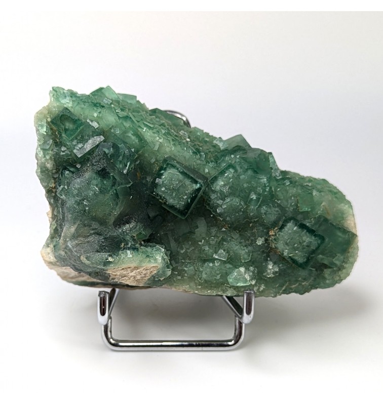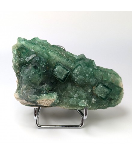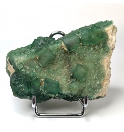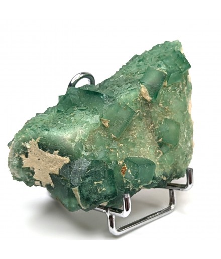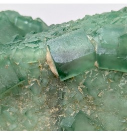 Fluorite green on gangue with crystallization covering a large part of the piece and therefore offering several directions of exposure.