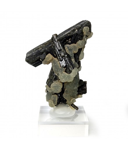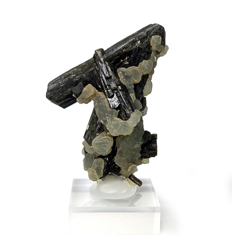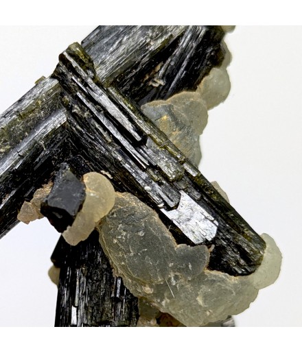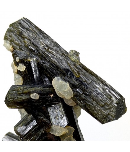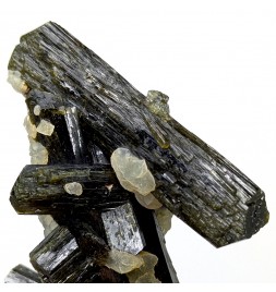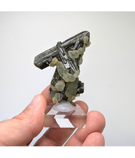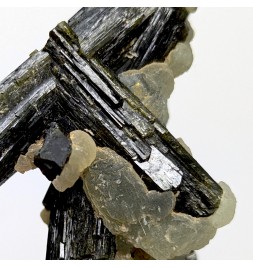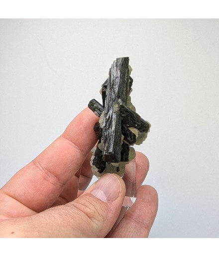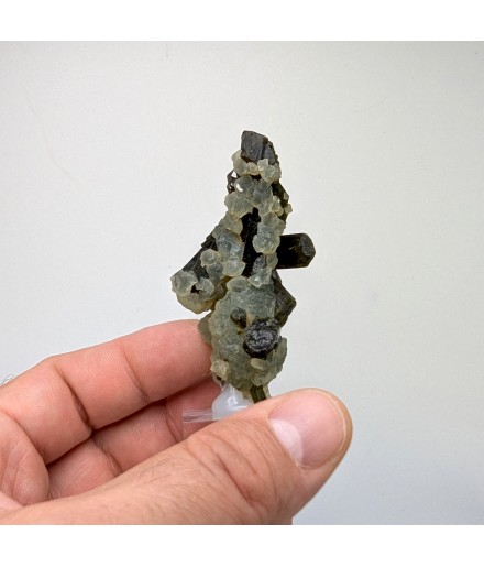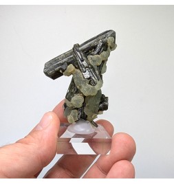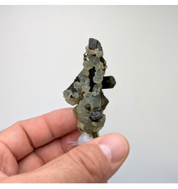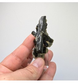 This mineral measures 5 cm high by 4.6 cm wide (size of the largest biterminated epidote crystal) and 3.5 cm at its thickest.