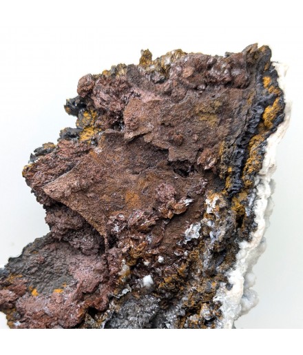 Goethite with a partial covering of calcite white.