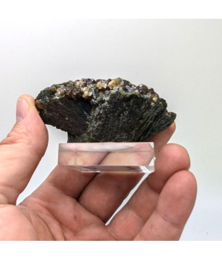 This mineral measures 7 cm long by 4.8 cm high and 3 cm at its thickest.