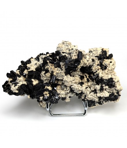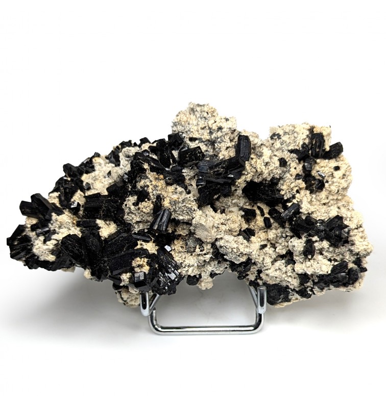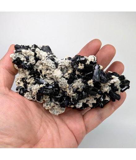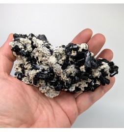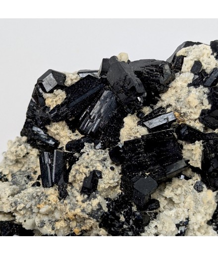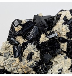 Piece rich in centimetric terminated crystals of tourmaline black on a gangue of feldspar.