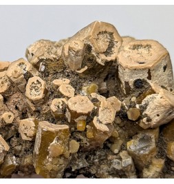 Piece with several sizes of crystals fromendlichite brown in color, species close to vanadinite where vanadium is replaced by arsenic.