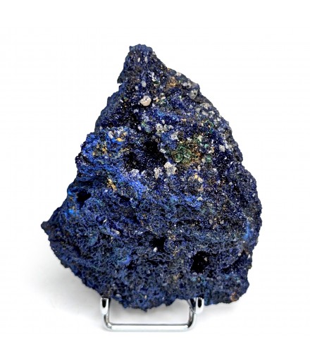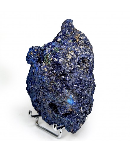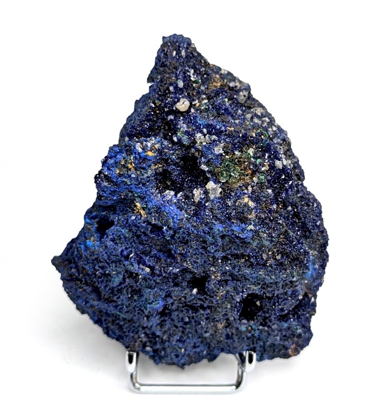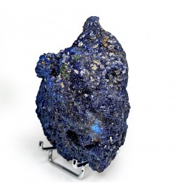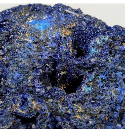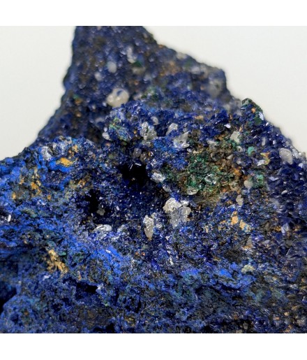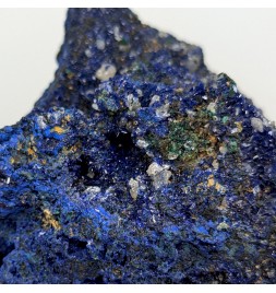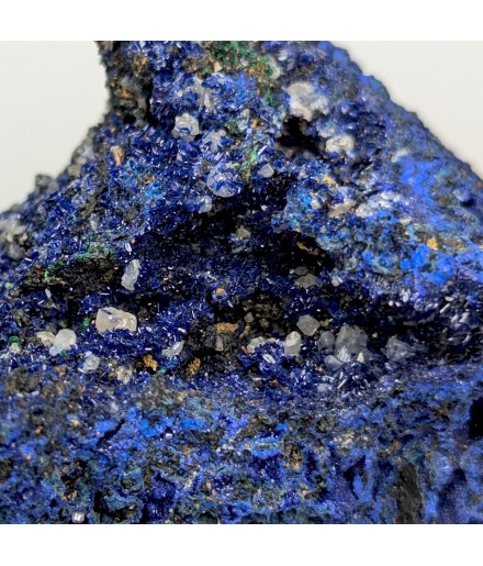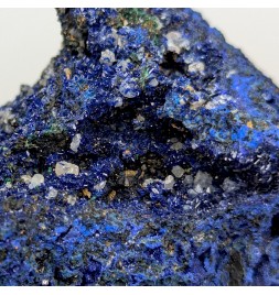 Sample ofazurite dark blue, partially crystallized, bearing some crystals of cerusite white.