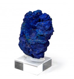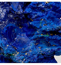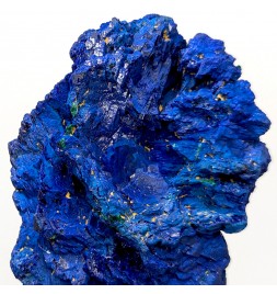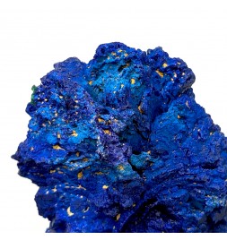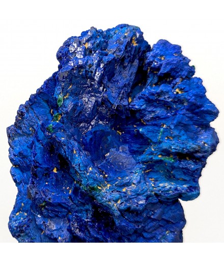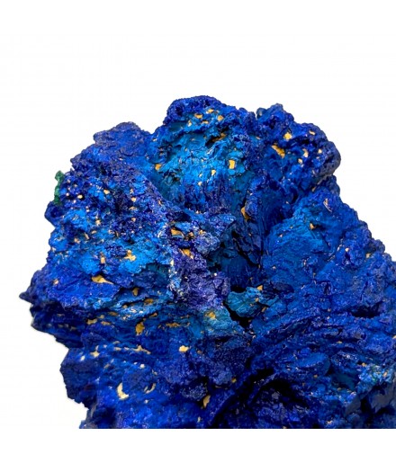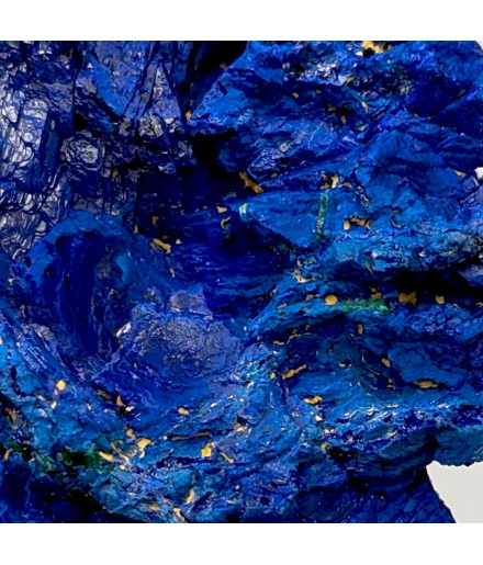 Azurite showing several shades of blue, contrasted by a little ochre gangue and malachite.