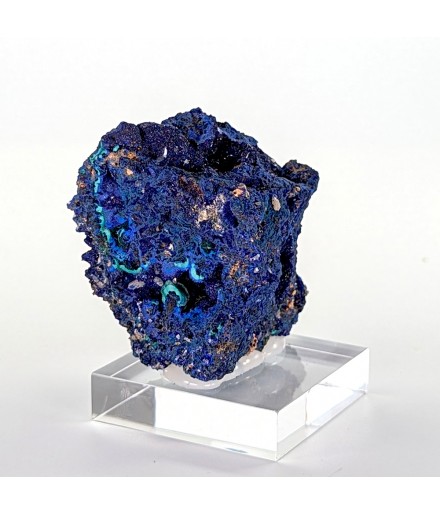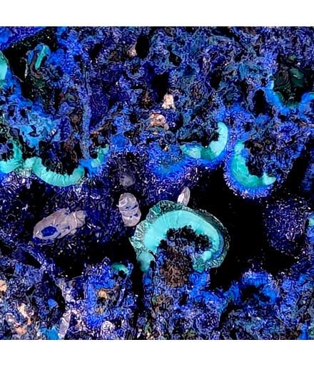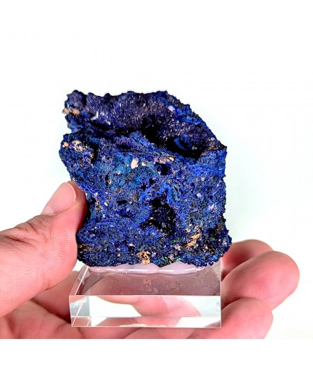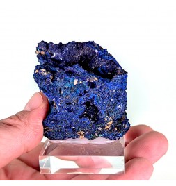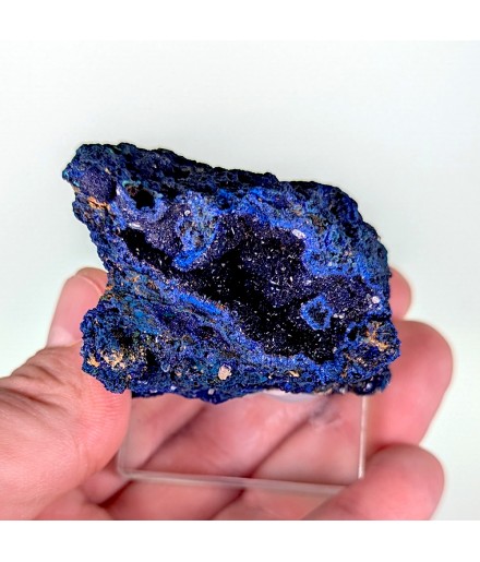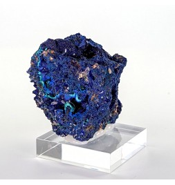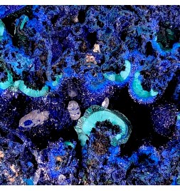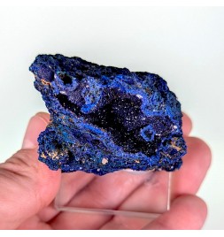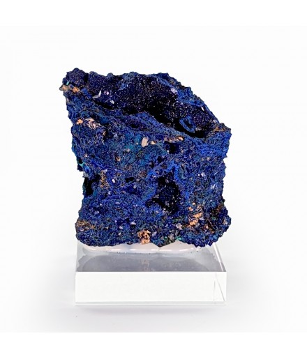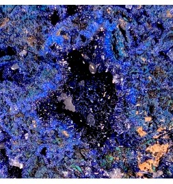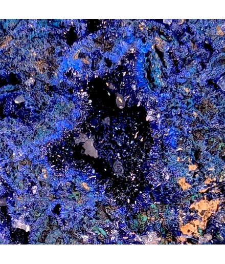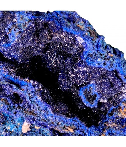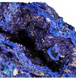 Sample ofazurite dark blue, crystallized in geode areas, associated with traces of cerussite and malachite.