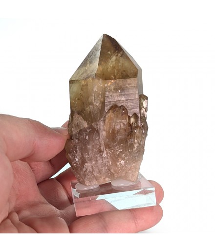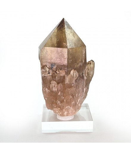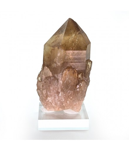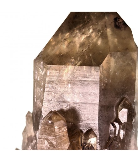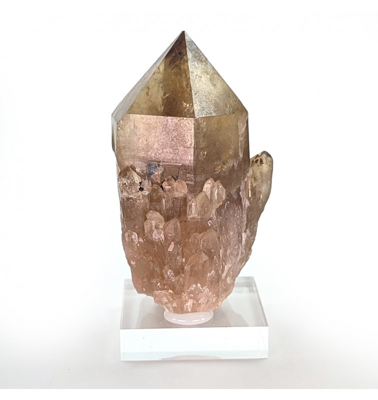 Citrine tip with a crown of small crystals surrounding the main tip.