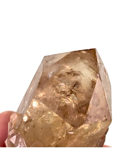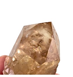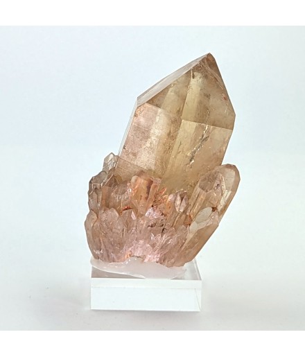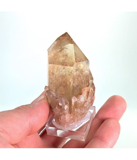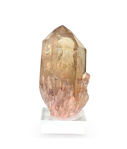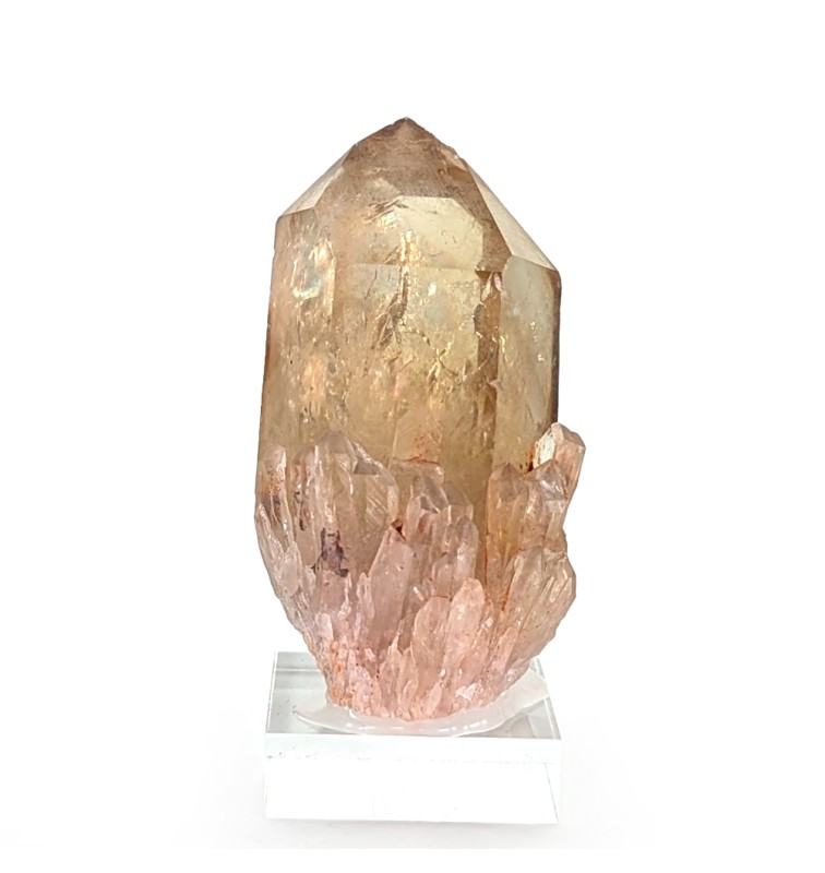 Tip of citrine with a crown of small crystals surrounding the main tip.