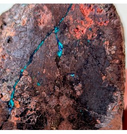 Sample of cuprite raw cut and polished from the former collection of a BRGM geologist.