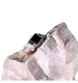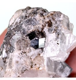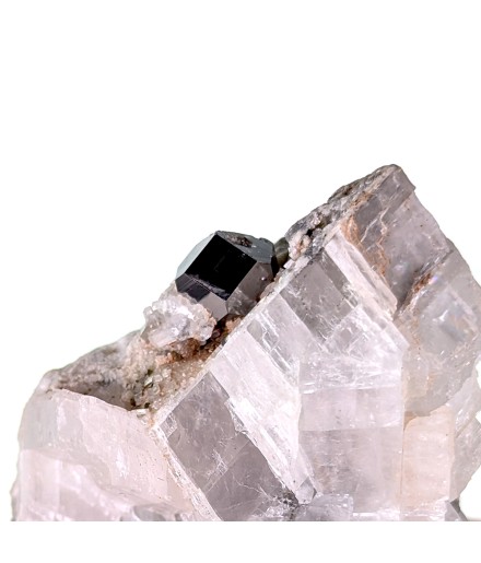 Specimen highlighting a crystal carrollite well defined on calcite, typical association of the deposit.
