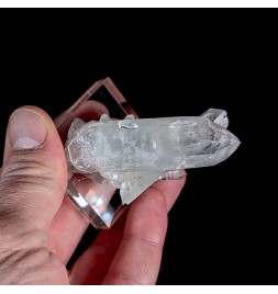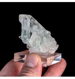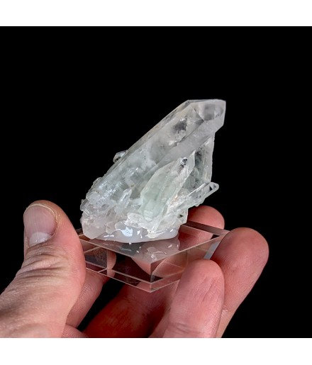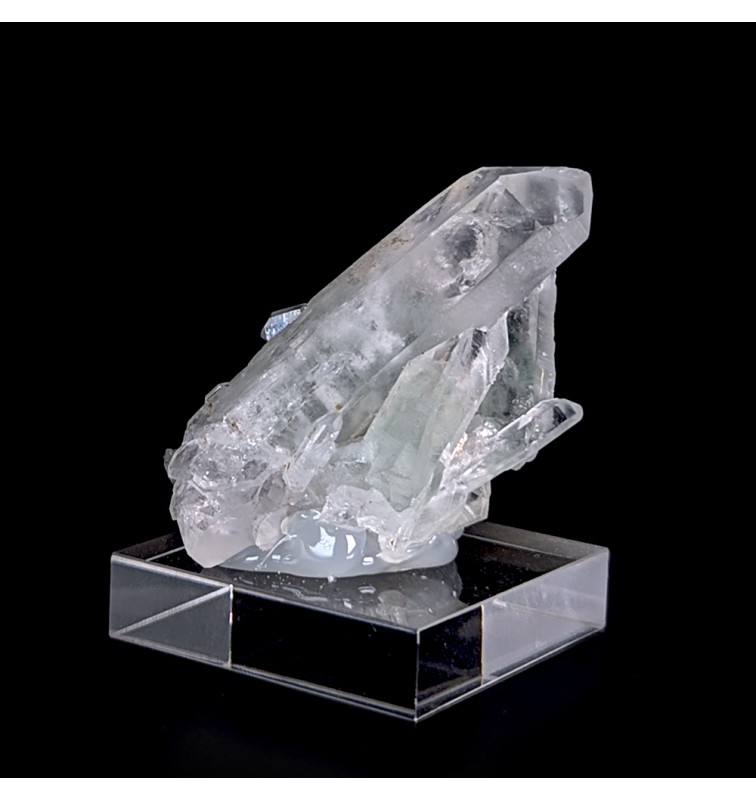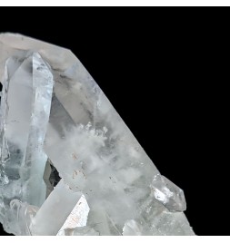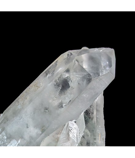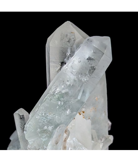 Group of crystals of quartz with inclusion of fuchsite at the base of the crystals, giving a slight green colour to the piece.
