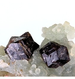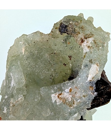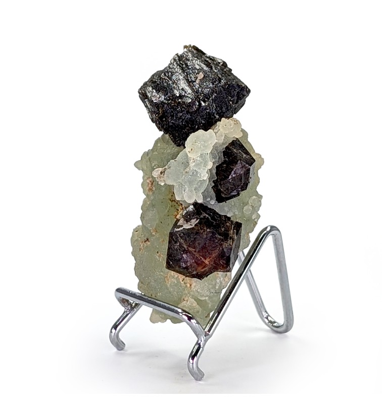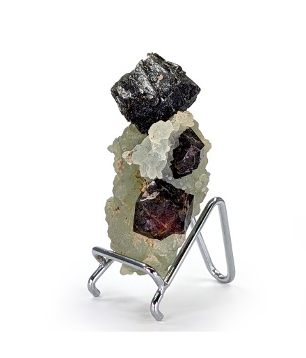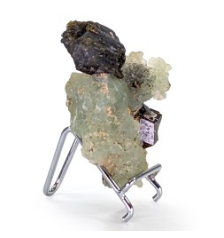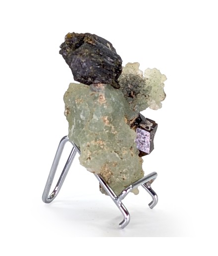 Here is an interesting piece, with a triple association of prehnite, garnet, epidote, and featuring the imprint of a garnet (obtained by perimorphosis) that has now disappeared.