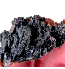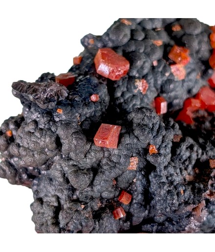 Sample of vanadinite offering a beautiful contrast with its matrix of goethite slightly stalactiform.