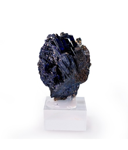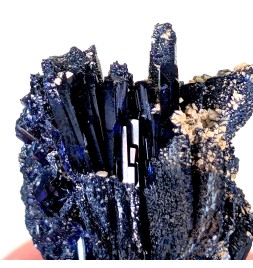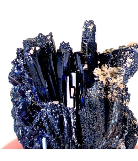 Pretty miniature featuring crystals ofazurite dark blue and slightly shiny.