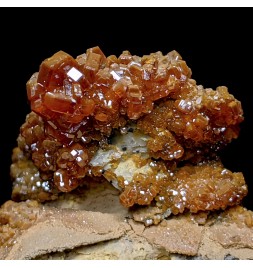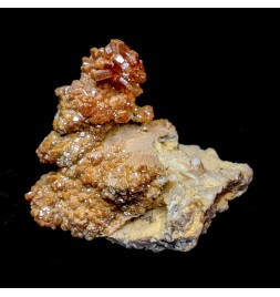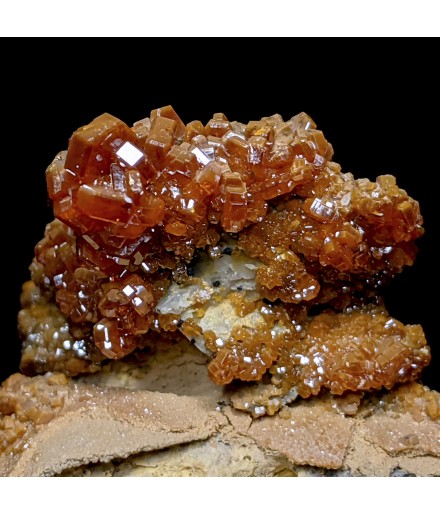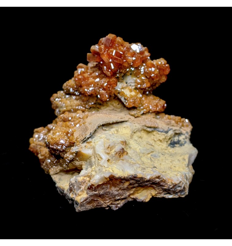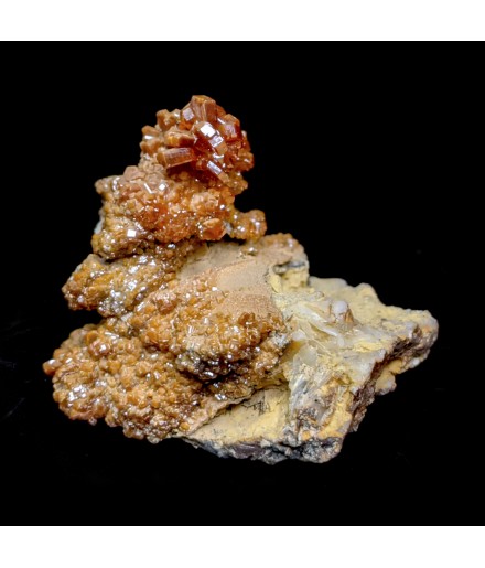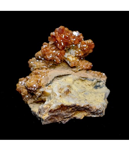 Pretty little vanadinite shiny on ochre matrix, with an interesting volume.