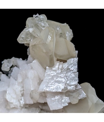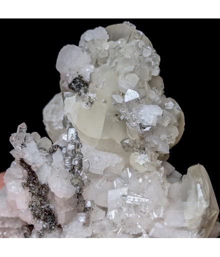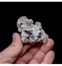 Interesting piece associating crystals of calcite, of the dolomite dew and fine crystals of quartz.