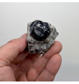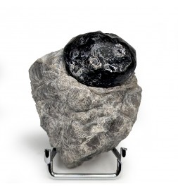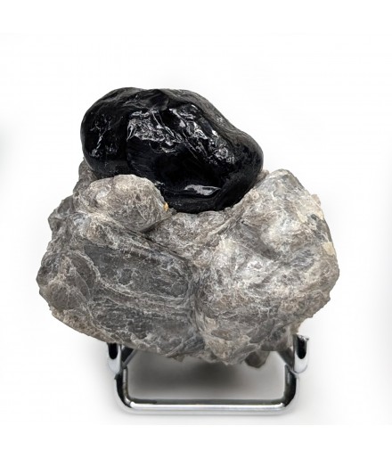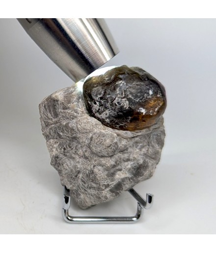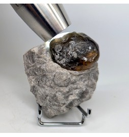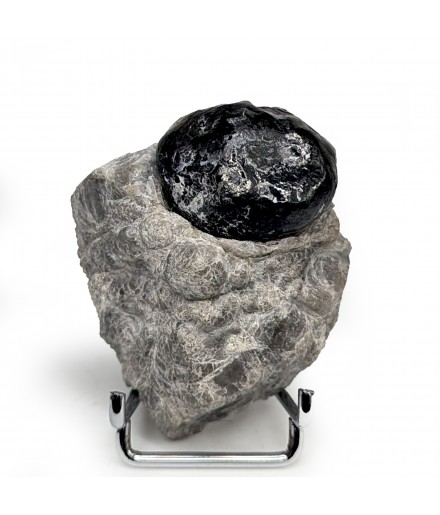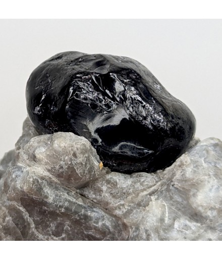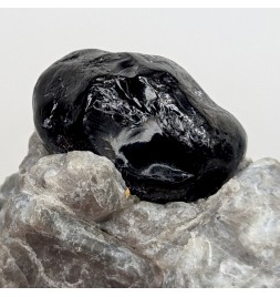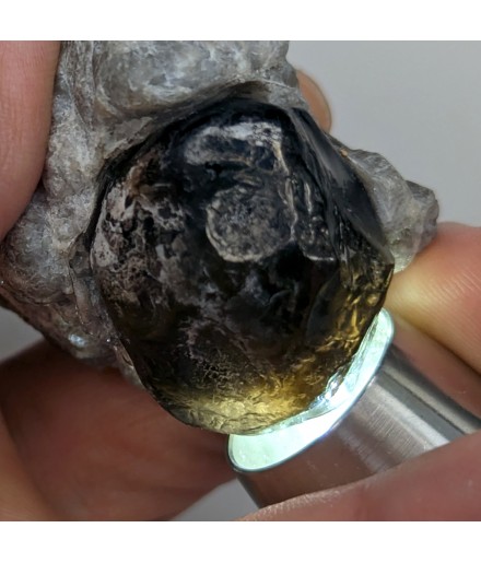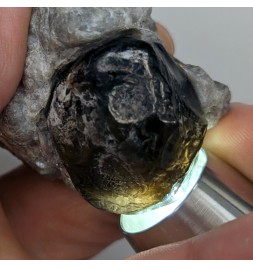 Nodule ofobsidian called "Apache tear", transparent if lit, on its obsidian perlite gangue.