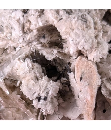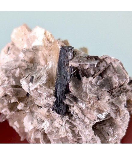 Interesting specimen of polytionite (mica group) bearing some black crystals ofaegirine.