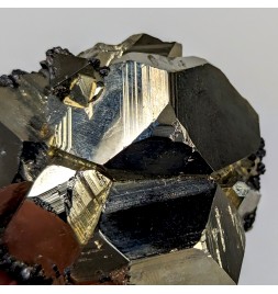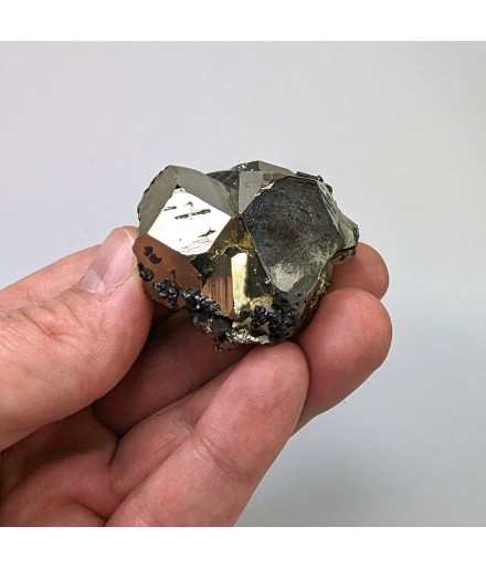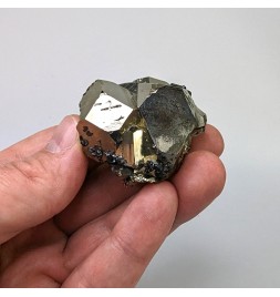 Small shiny pyrite with octahedral crystals and presence of black sphalerite.
