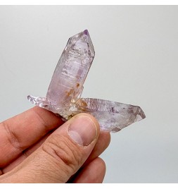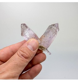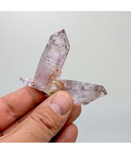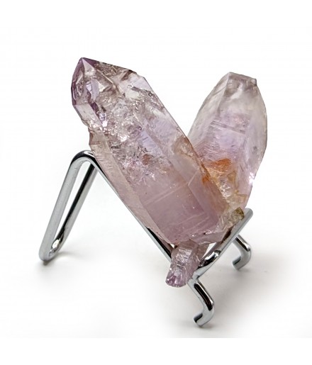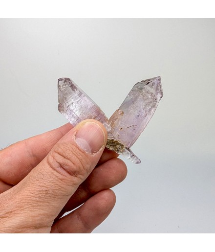 Pair of crystals ofamethyst transparent and shiny, one of the crystals has a double termination, one windowed and very thin for the other.
