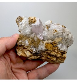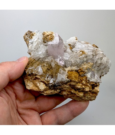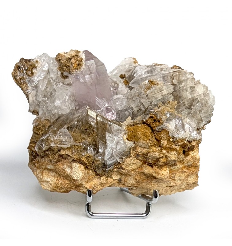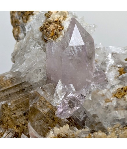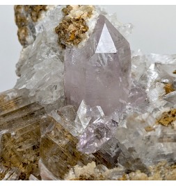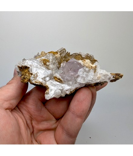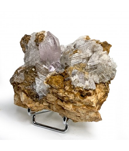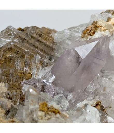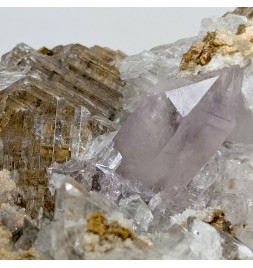 Association of an amethyst crystal and gypsum var. selenite, with crystals of very good size for the deposit and a good shine.