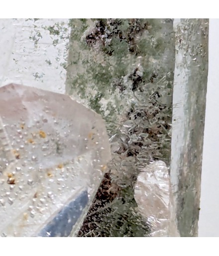 Quartz transparent with chlorite inclusions. Imperfect piece but with a lot of charm.