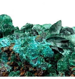 Interesting piece bearing crystals ofazurite pseudomorphosed into malachite, on a massive gangue containing cuprite.