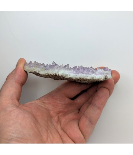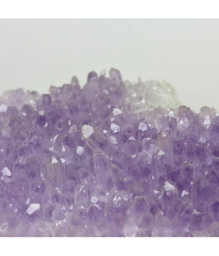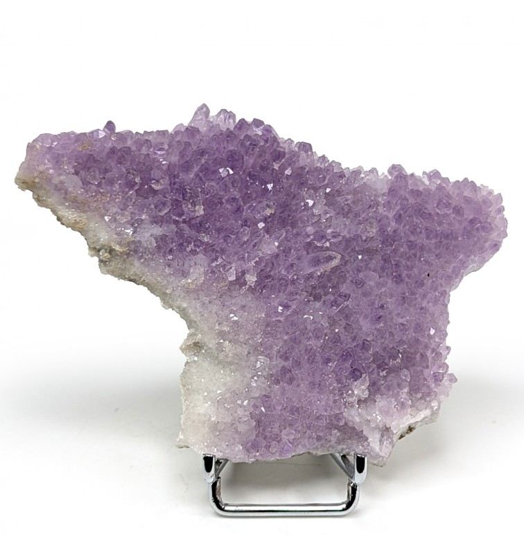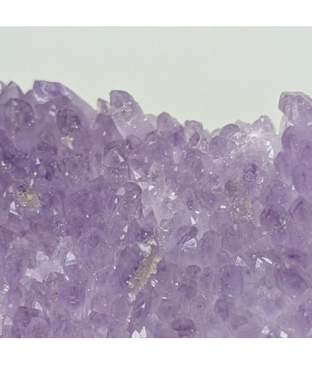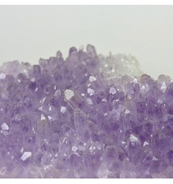 Fine carpet of small shiny crystals ofamethyst lavender color.