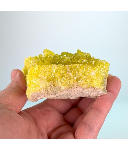 Bolivian sulfur crystallized with a very beautiful color that puts "peps" in a showcase.
