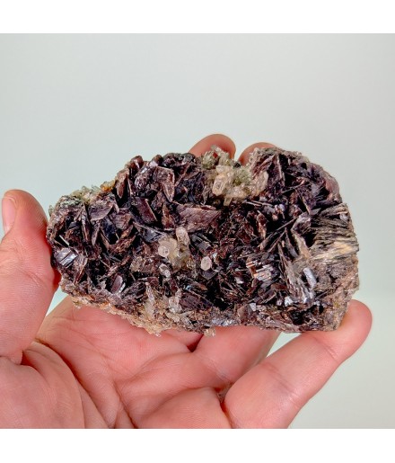 Very nice piece ofaxinite shiny, associated withepidote and quartz. The back is also entirely crystallized by a mix of quartz and epidote.