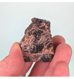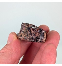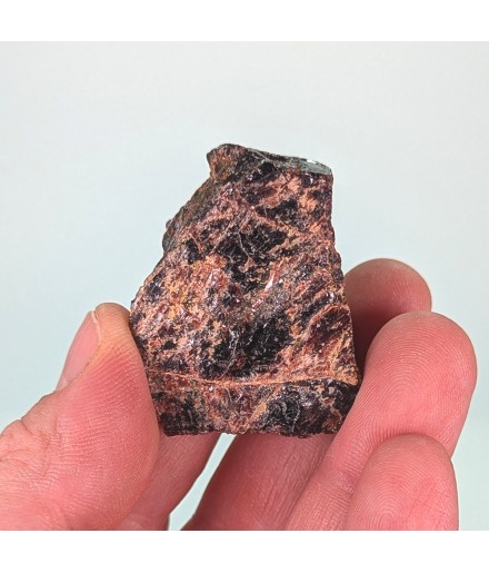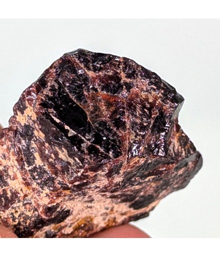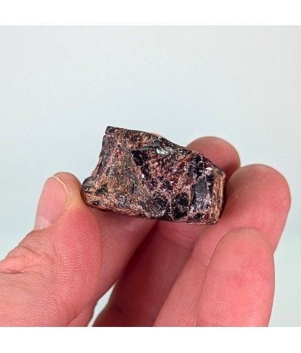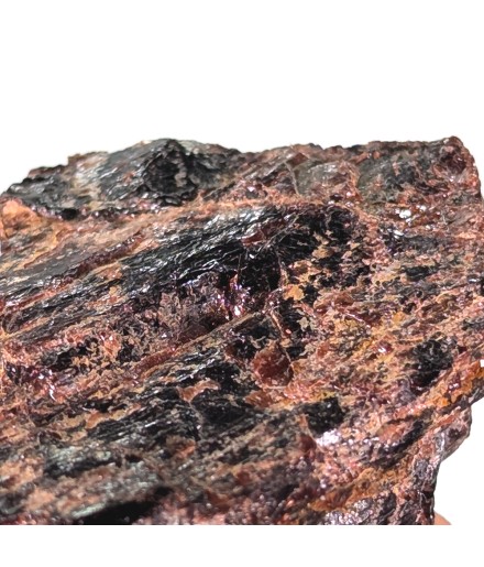 Raw sample of tantalite with slight almandine red reflections.