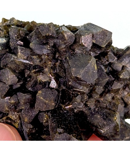 Group of terminated dark green epidote crystals on a massive epidote matrix.