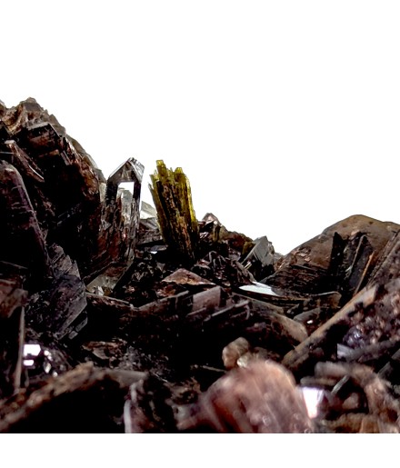 Aesthetic axinite shiny, associated withepidote and quartz. The back is also fully crystallized by a mix of quartz and epidote.