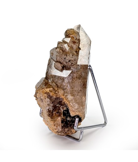 Very pretty cluster of crystals of quartz, which includes small double-terminated ones, rich in clay inclusions.