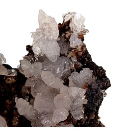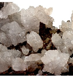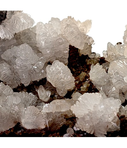 Mineral with a flaky appearance, presenting crystals ofhemimorphite shiny caught in limonite lamellae.
