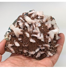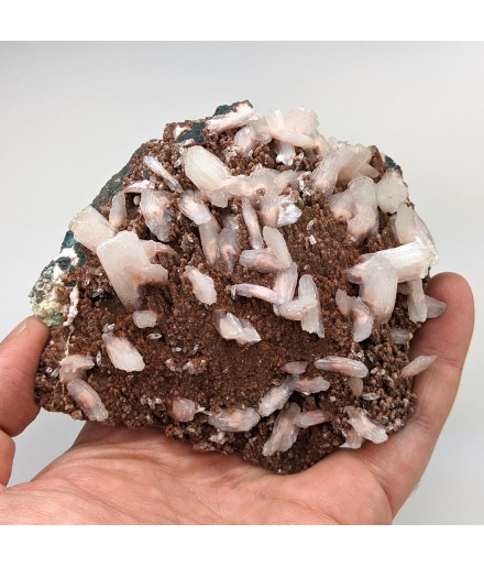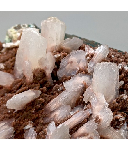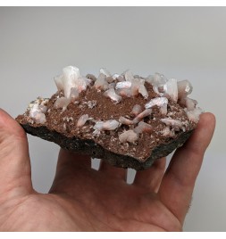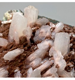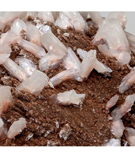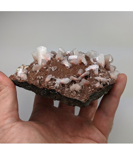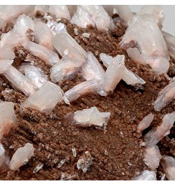 Pretty piece with crystals of stilbite slightly transparent revealing a pink heart, on a brick red gangue.