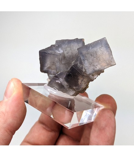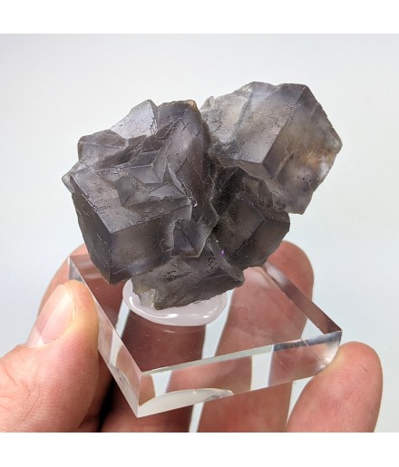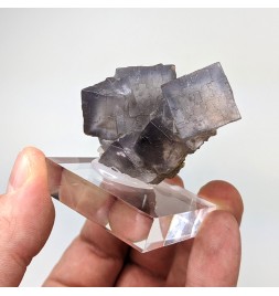 Pretty fluorite mounted on a base with well-marked blue ghosts.