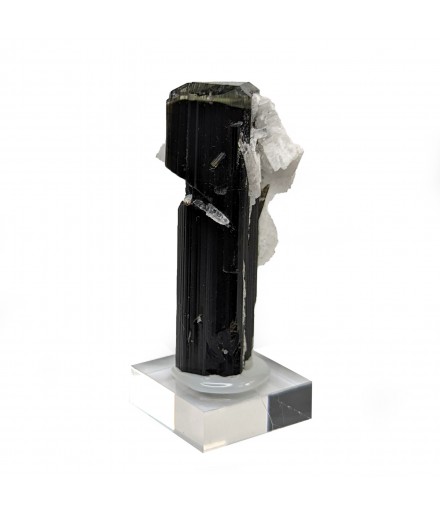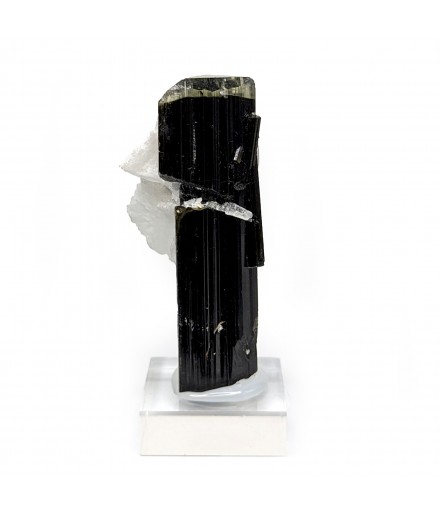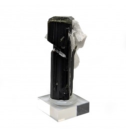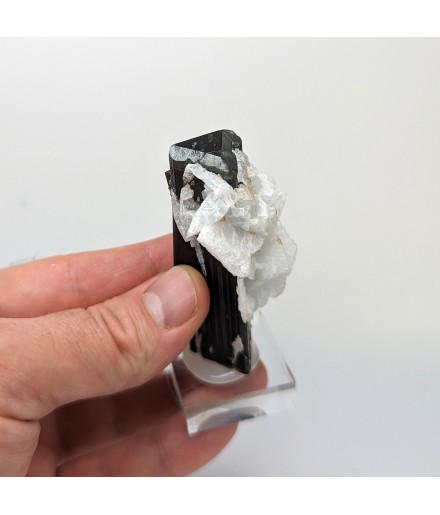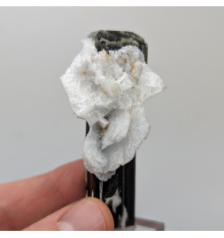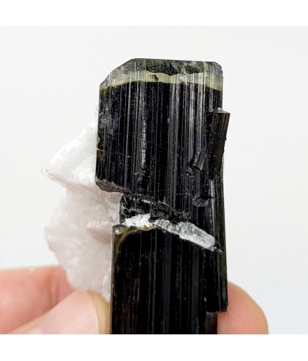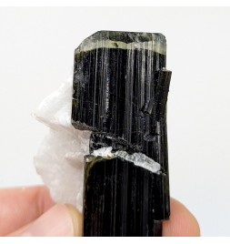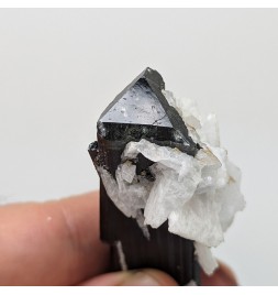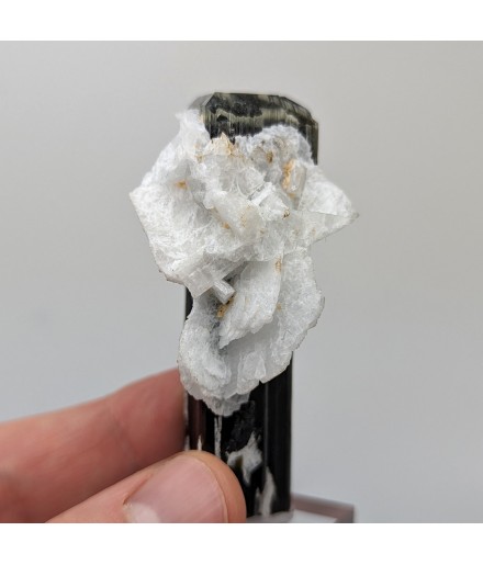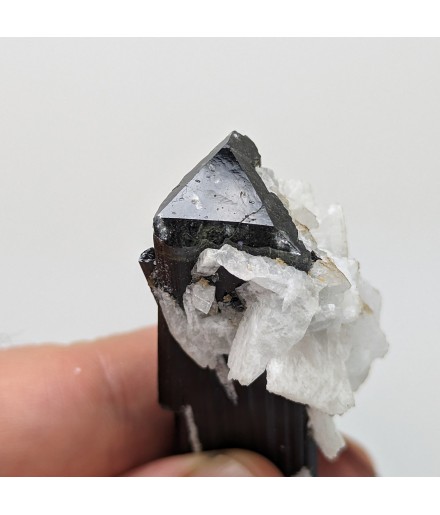 Crystal of tourmaline dark, capped with light green, embedded in crystals ofalbite.