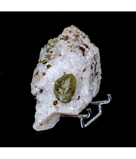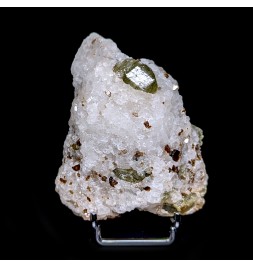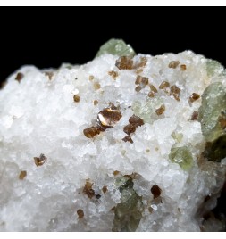 Piece presenting crystals of diopside in quartz accompanied by muscovite.