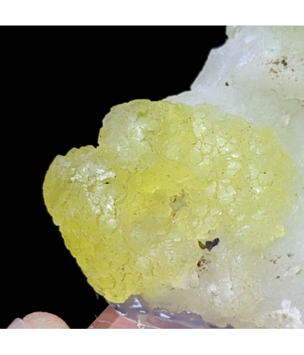 Nice sample of brucite with a well-marked yellow color, contrasted by a little white gangue.