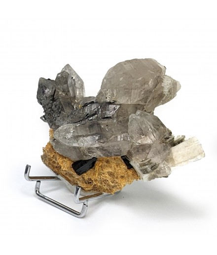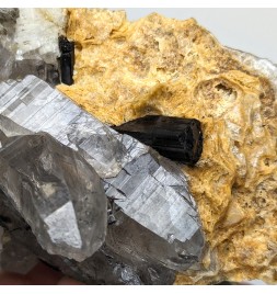 Pleasant architecture for this piece combining quartz transparent with inclusions of tourmaline black and a little bit of feldspar.