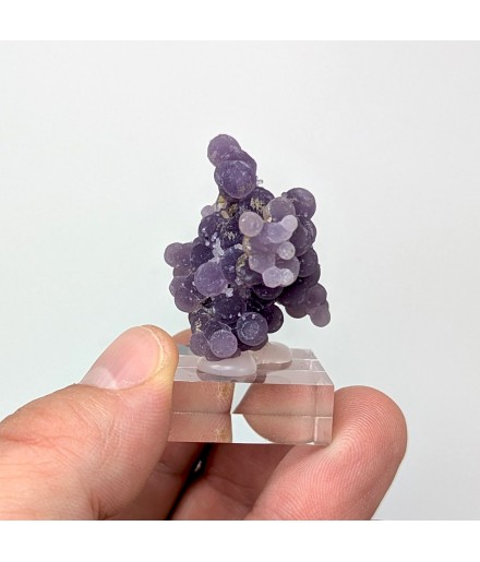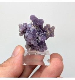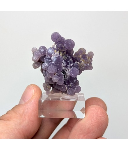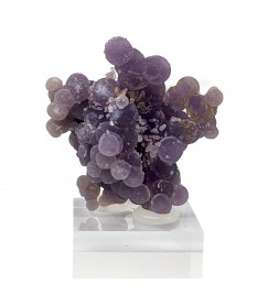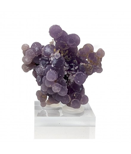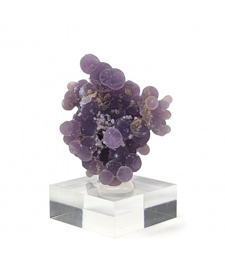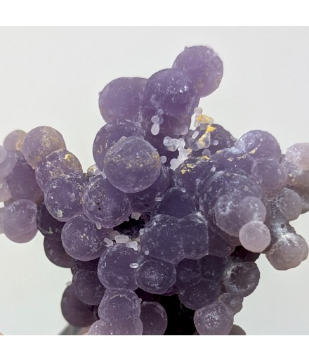 Botryoidal chalcedony with a well-marked purple color and a few millimetric quartz crystals.