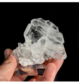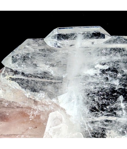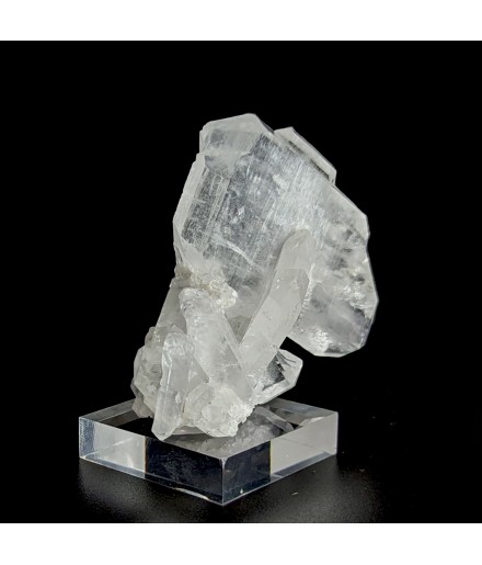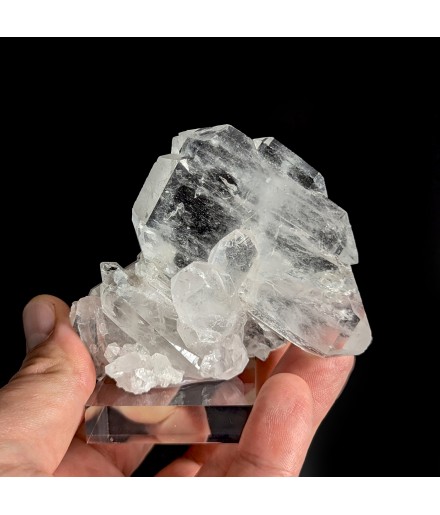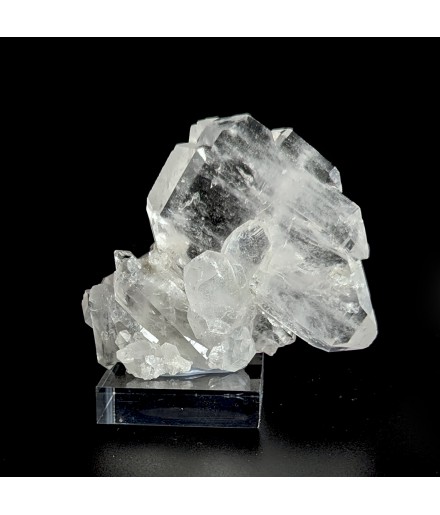 Beautiful flat quartz, bi-determined, with a well-marked soul, carried by a group of flat crystals.