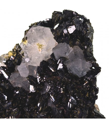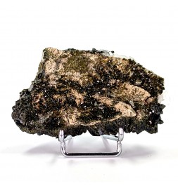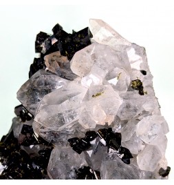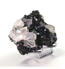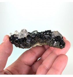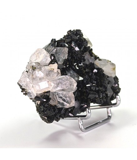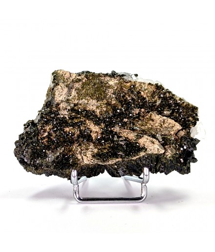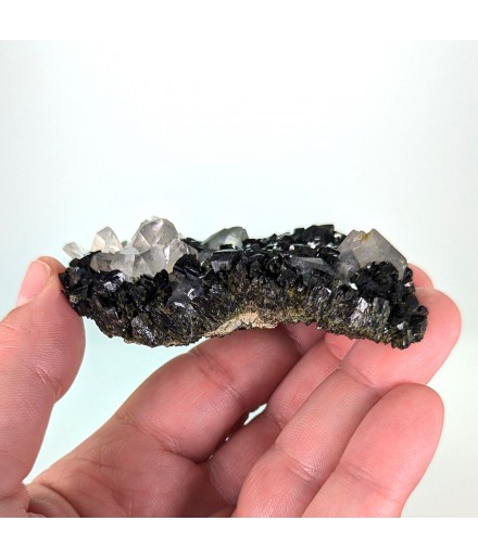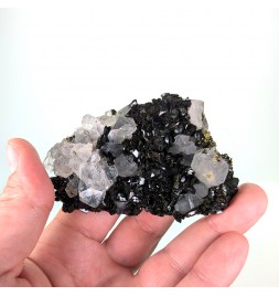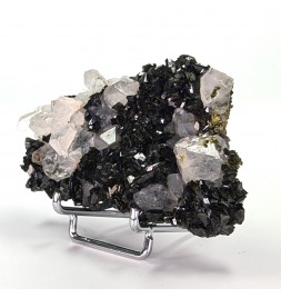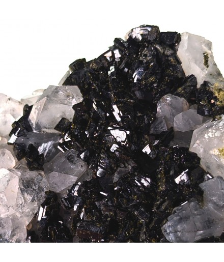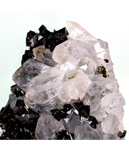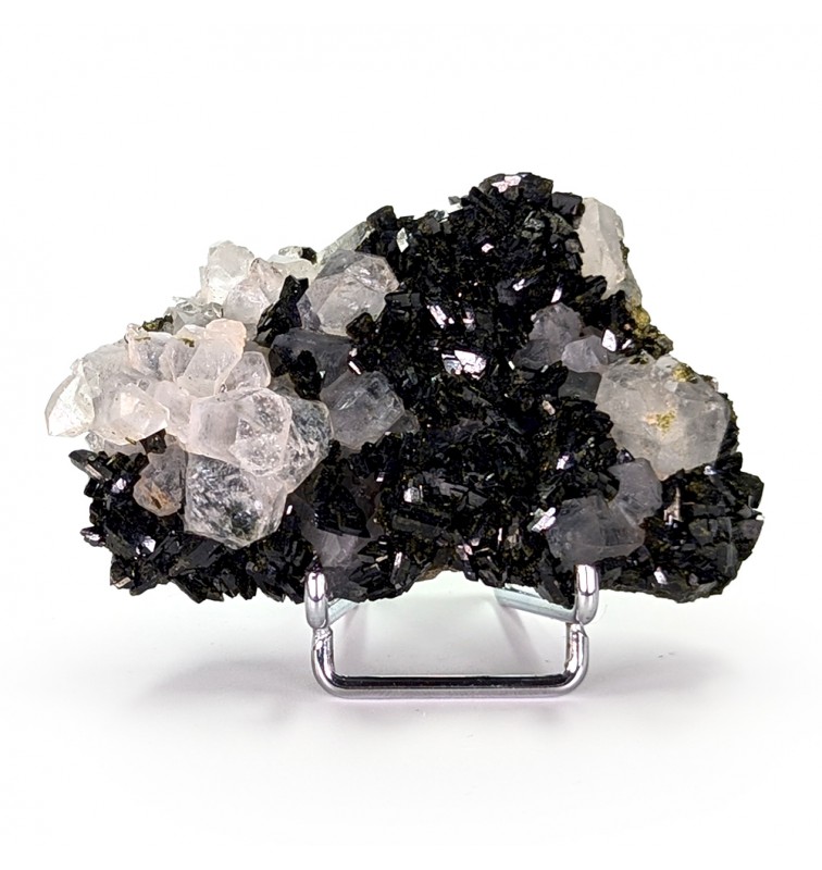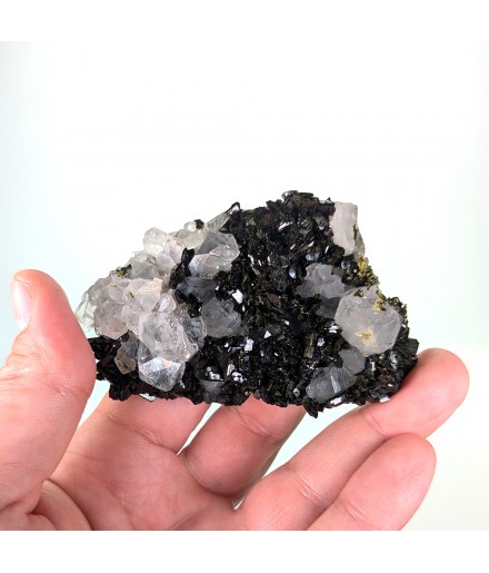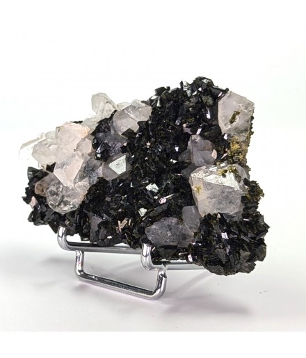 Beautiful piece combining crystals ofepidote dark green with crystals of quartz transparent.