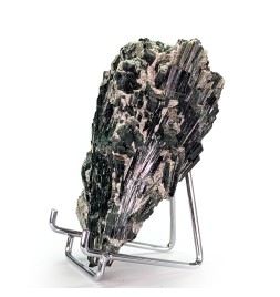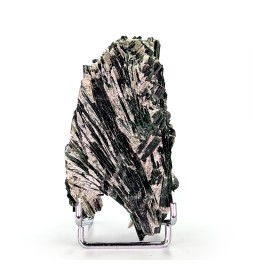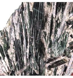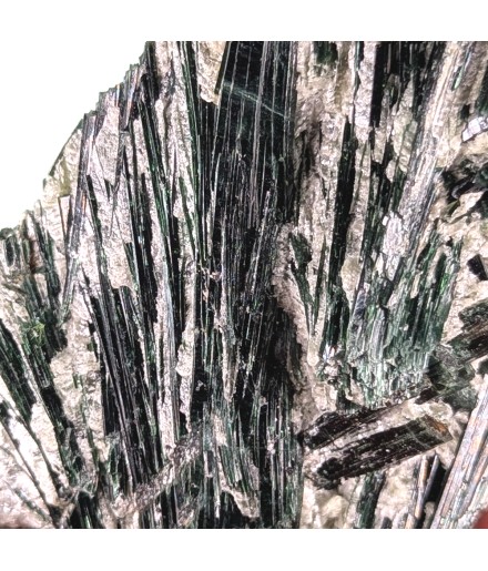 Sample of green actinolite rich in long shiny crystals embedded in talc.