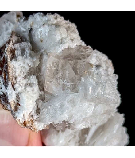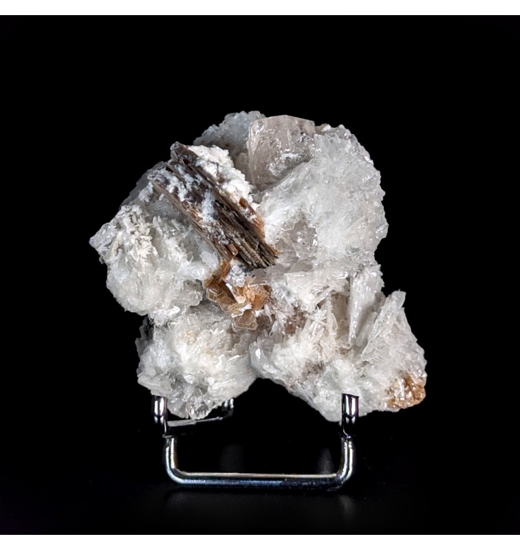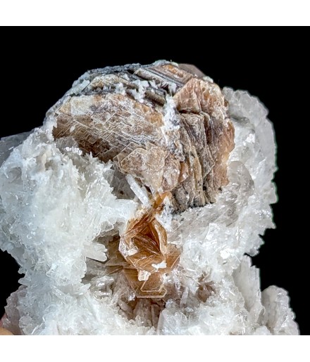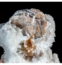 Interesting piece combining a topaz, crystals of muscovite, on a matrix of cleavelandite.